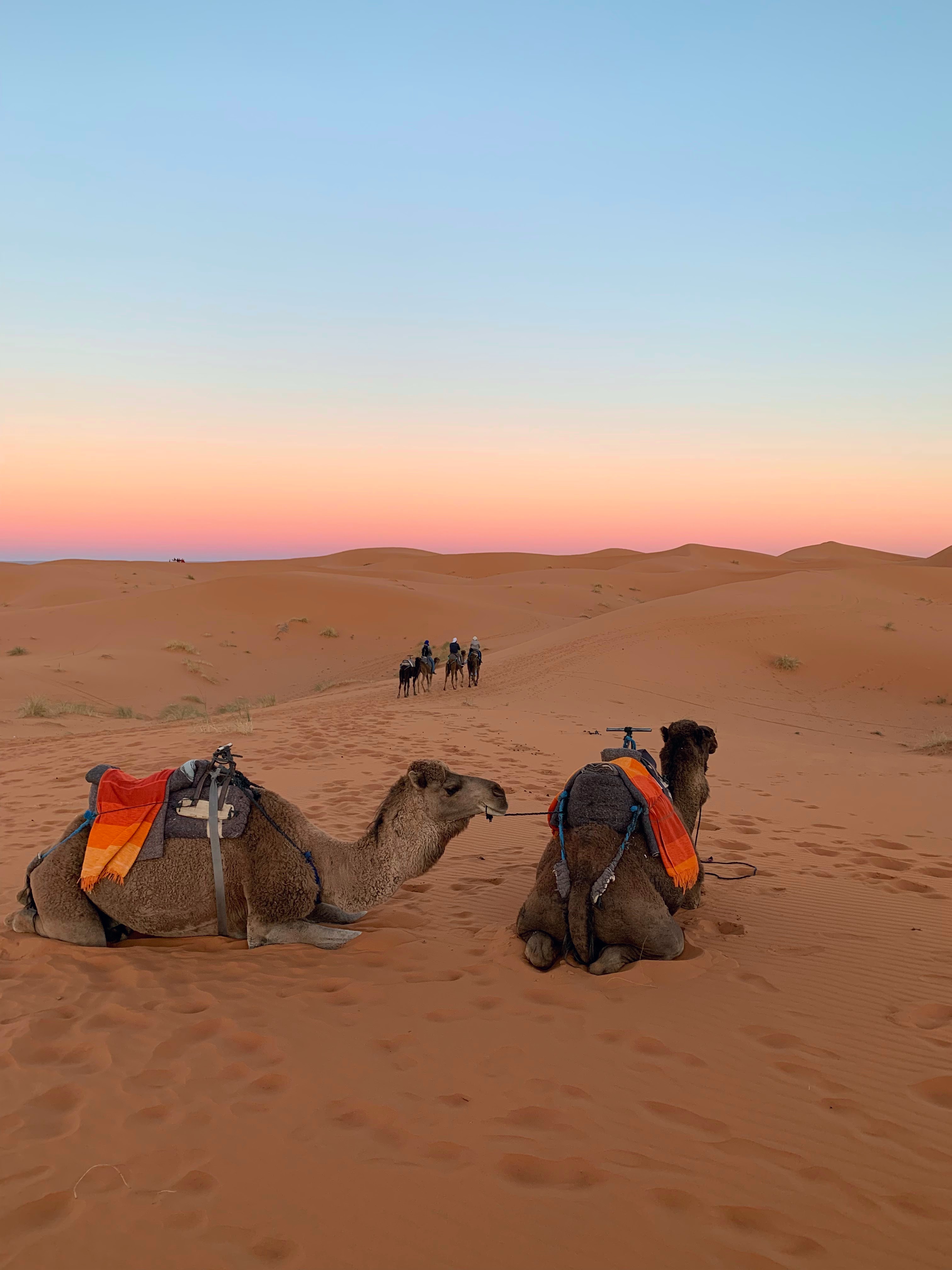We mounted camels and traipsed our way to a tent in the dunes